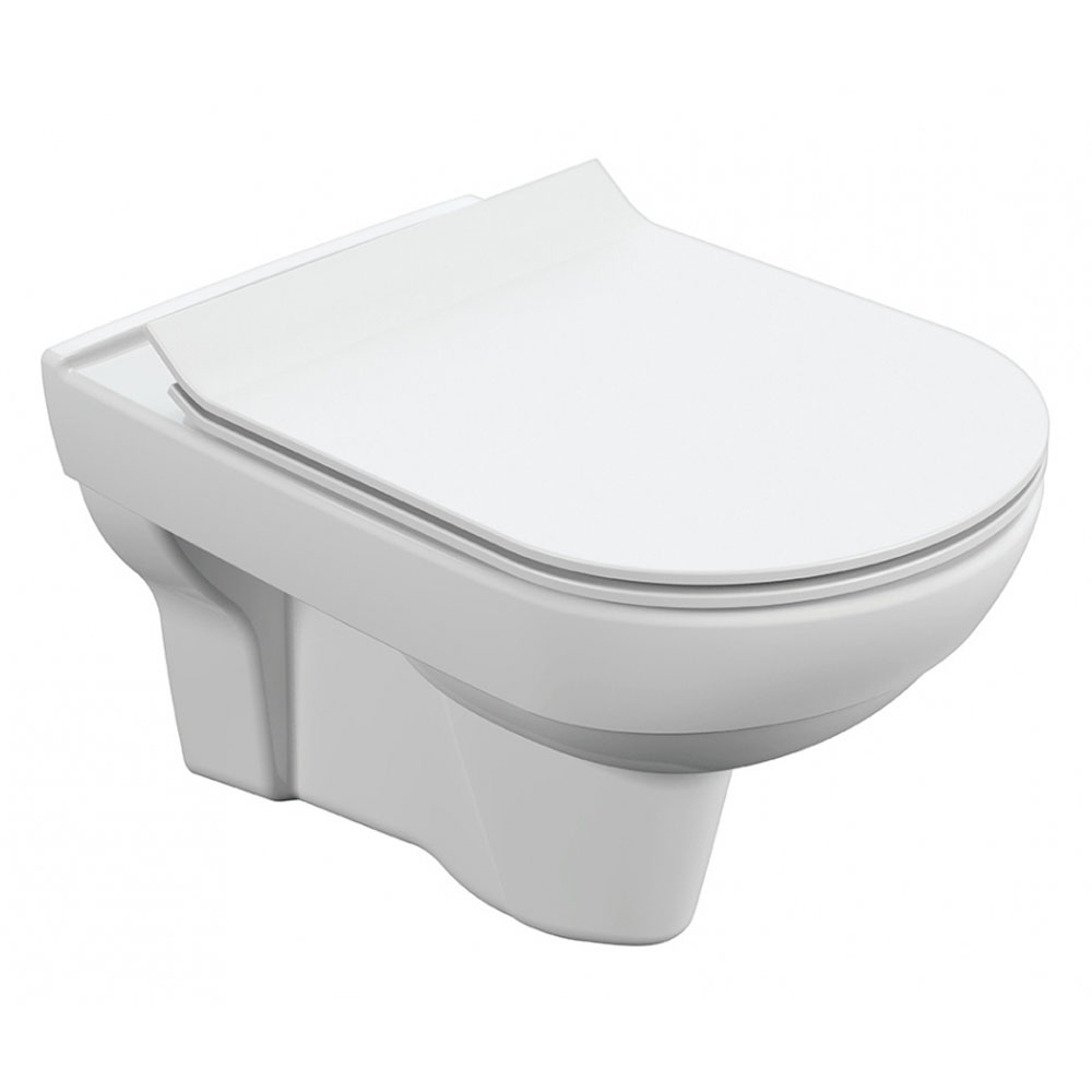 Комплектация Унитаз настенный керамический безободковый; сиденье для унитаза из дюропласта ультратонкая легкосъемная с функцией плавного закрывания; инструкция/гарантийный талон