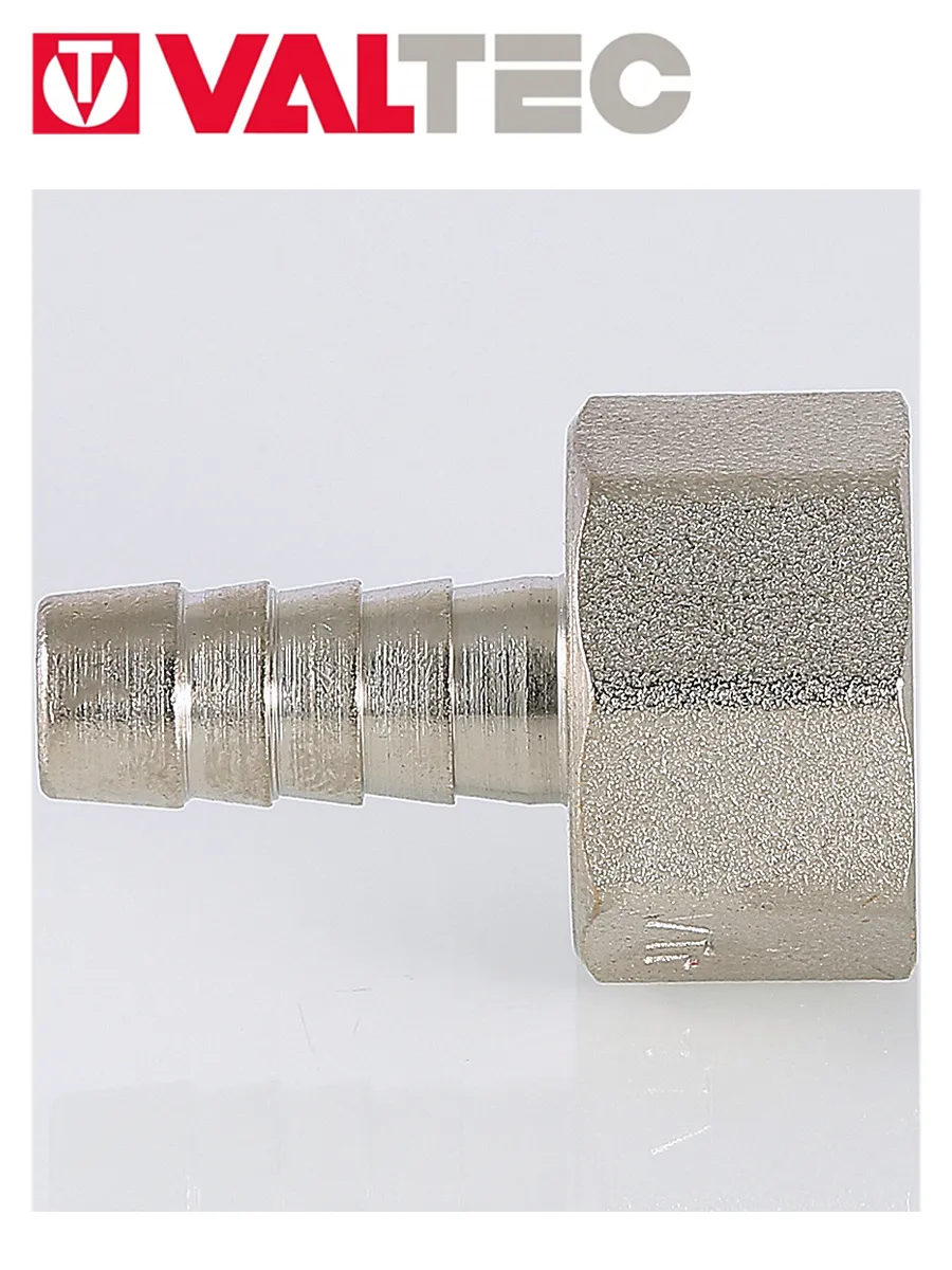 (VTr.654.N) Штуцер для шланга с внутренней резьбой изготовлен из высококачественной сантехнической латуни марки CW617N методом горячего прессования с нанесением защитного гальванического покрытия (никель). Резьба фитинга – дюймовая, диаметром 1/2 или 3/4". Размеры штуцера – от 10 до 20 мм (с шагом 2 мм).