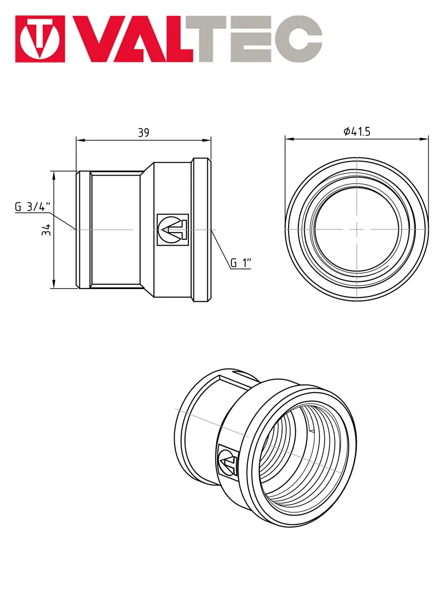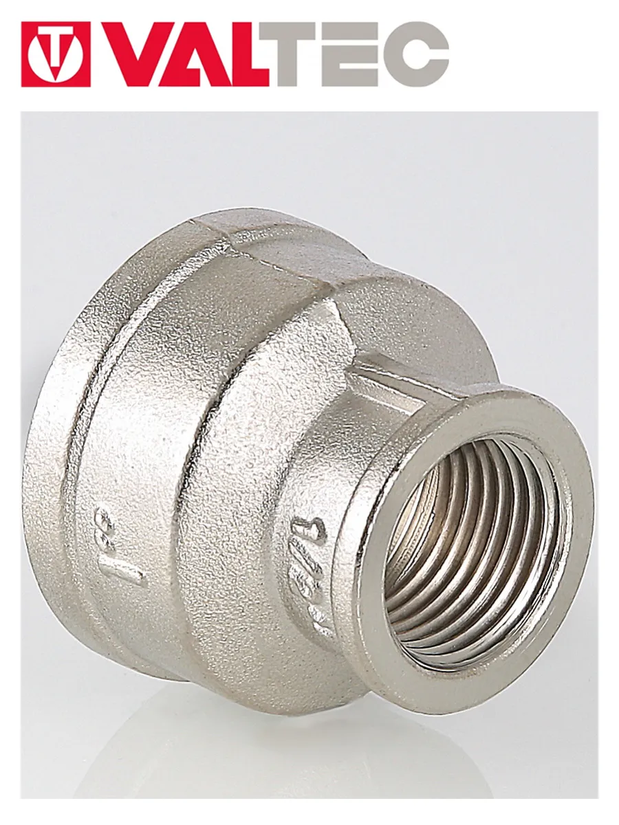 (VTr.240.N) Латунная никелированная муфта для перехода с одного диаметра трубы на другой. Резьба – внутренняя/внутренняя, цилиндрическая трубная по ГОСТу 6357 (ISO 228, EN 10226), совместима также с наружной конической трубной резьбой по ГОСТу 6211 (ISO R7).