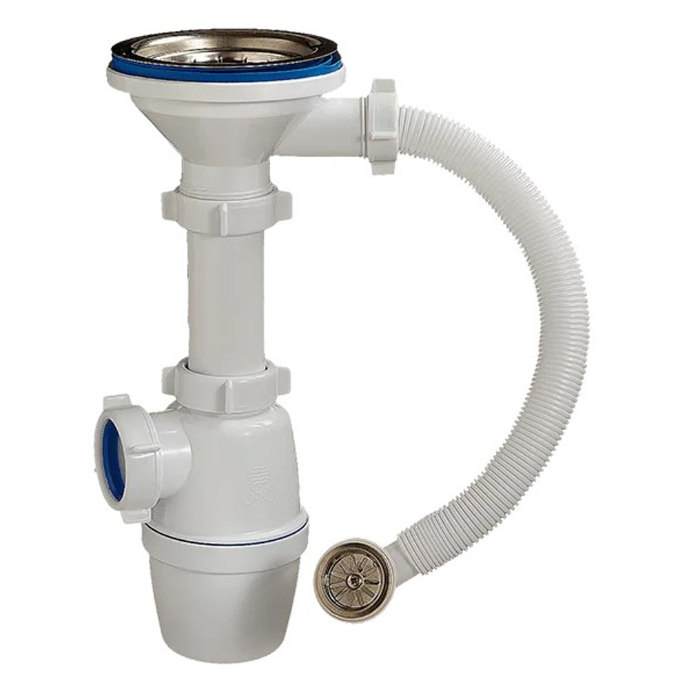 Сифон 3 1/2" ОРИО нерж. с круглым переливом, для гранитной мойки