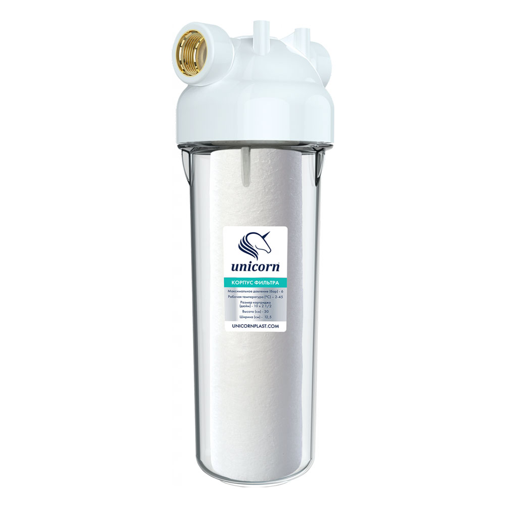 Фильтр магистральный 10" 1/2" (прозрачная колба, с картриджем) UNICORN