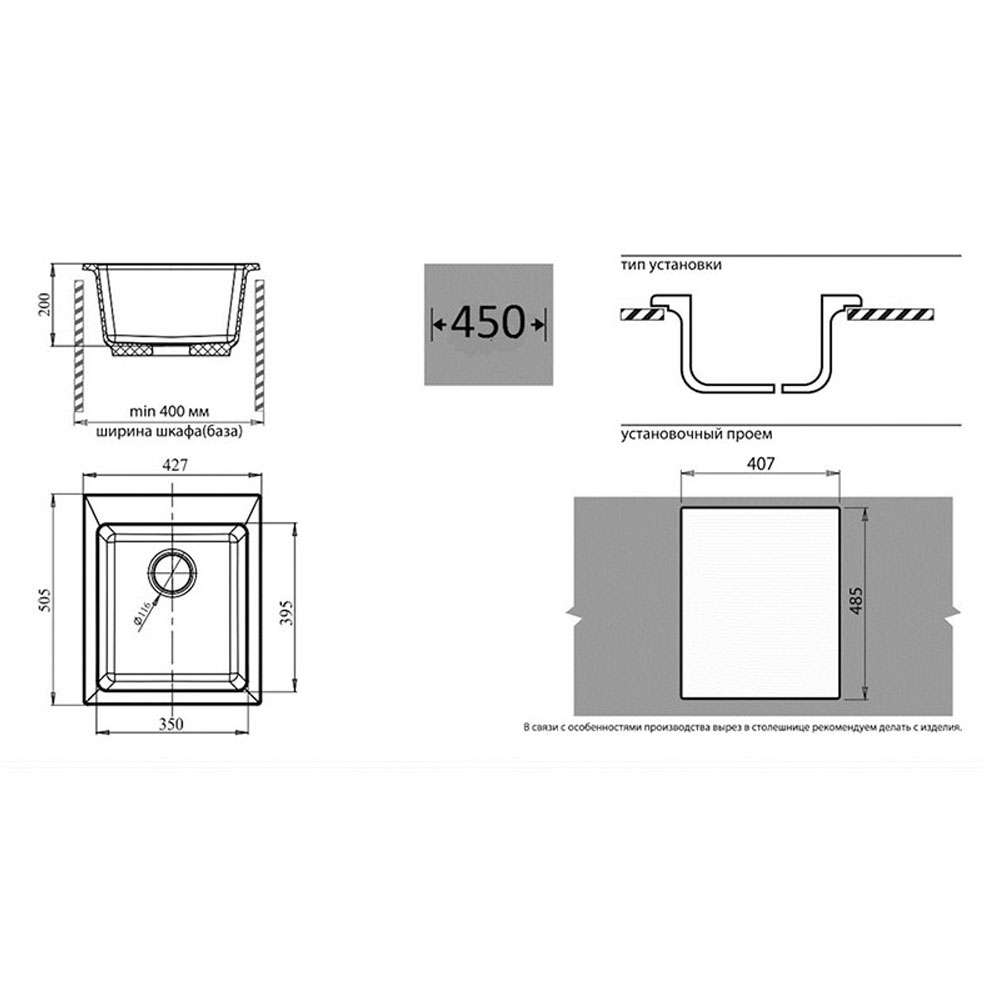 Установочный проем: 407х485 мм
