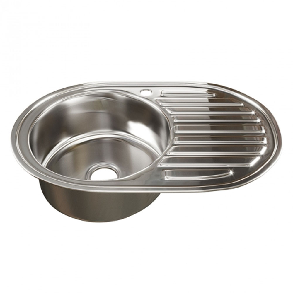 Мойка нерж врезная 500 х 770 х 180мм 0,8 овальная левая выпуск 3 1/2" MIXLINE