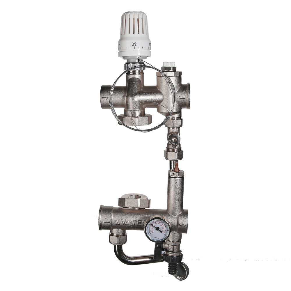 (VT.VALMIX.0) Насосно-смесительный узел VALTEC VALMIX предназначен для создания в системе отопления здания открытого циркуляционного контура с пониженной до настроечного значения температурой теплоносителя. Узел обеспечивает поддержание заданной температуры и расхода во вторичном циркуляционном контуре, а также позволяет регулировать температуру и расход теплоносителя в зависимости от требований пользователя.