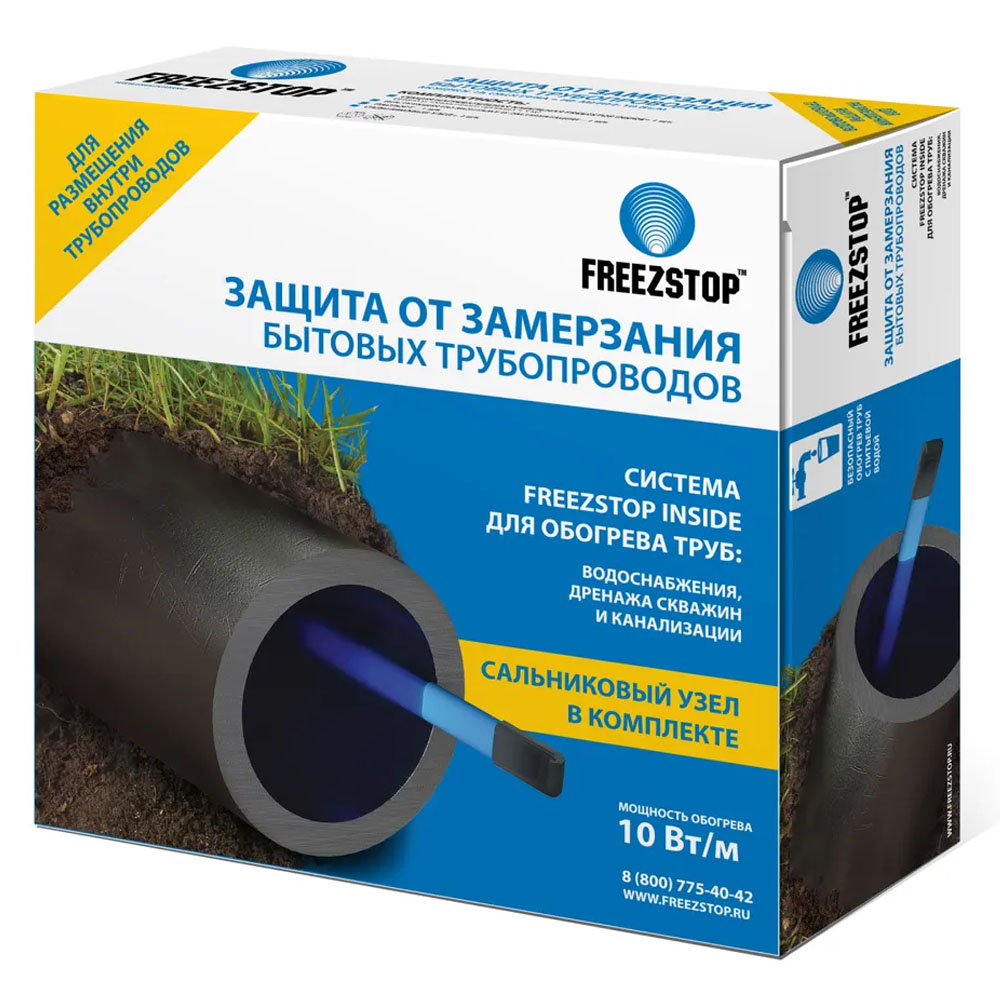 Система обогрева трубопроводов Freezstop Inside - идеальное решение для обогрева труб небольшого диаметра. Устанавливается внутри трубы с водой или другой неагрессивной средой, а также снаружи трубопровода (опционально).