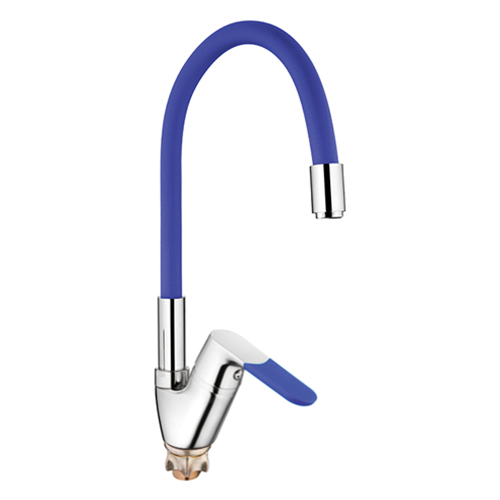 Смеситель для кухни 40 карт. LEDEME с бок. ручкой, силиконовый излив, голубой