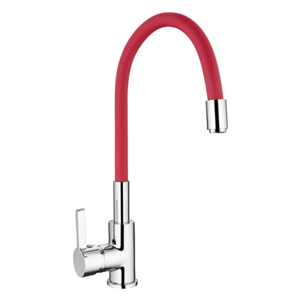 Смеситель для кухни 35 карт. LEDEME с бок. ручкой, гибкий излив, красный