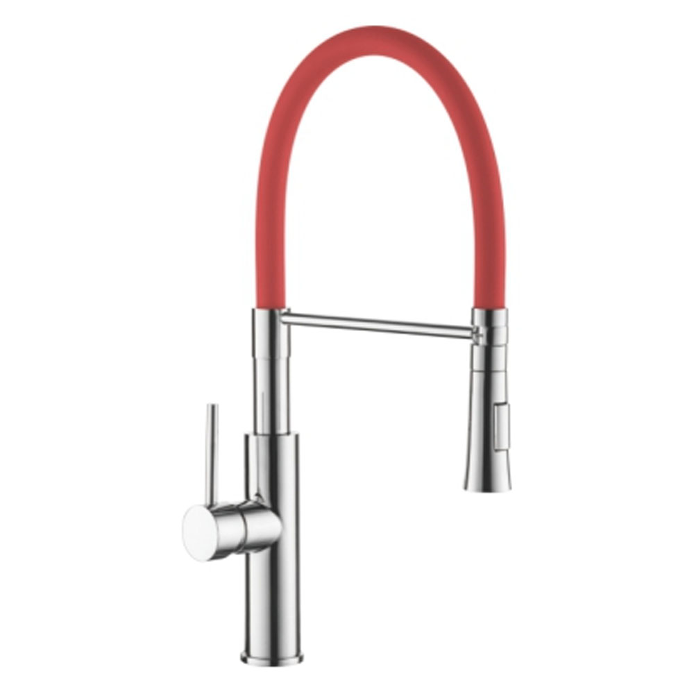 —Смеситель для кухни 35 карт. LEDEME с бок. ручкой, гибкий излив, красный