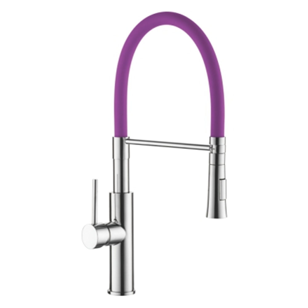 —Смеситель для кухни 35 карт. LEDEME с бок. ручкой, гибкий излив, фиолетовый