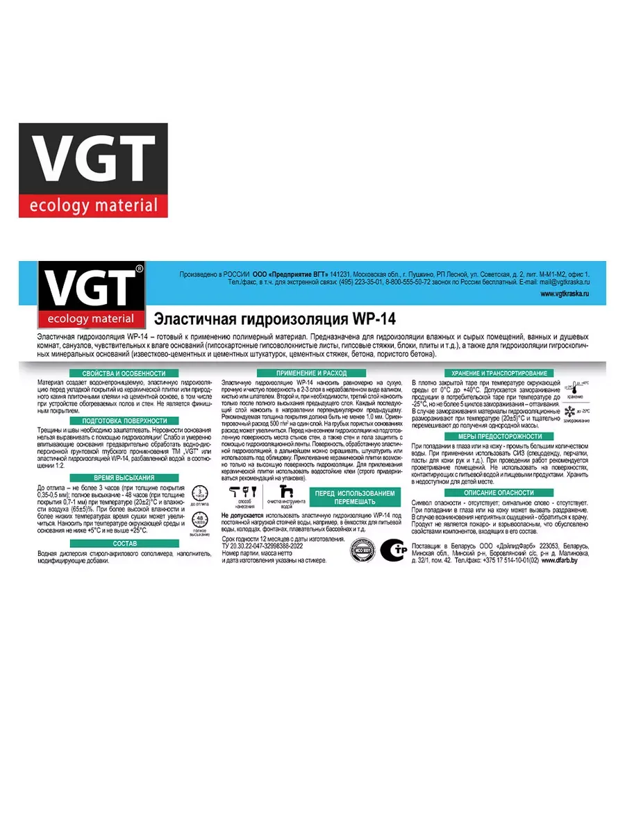Гидроизоляция 6,0кг эластичная ВГТ WP-14