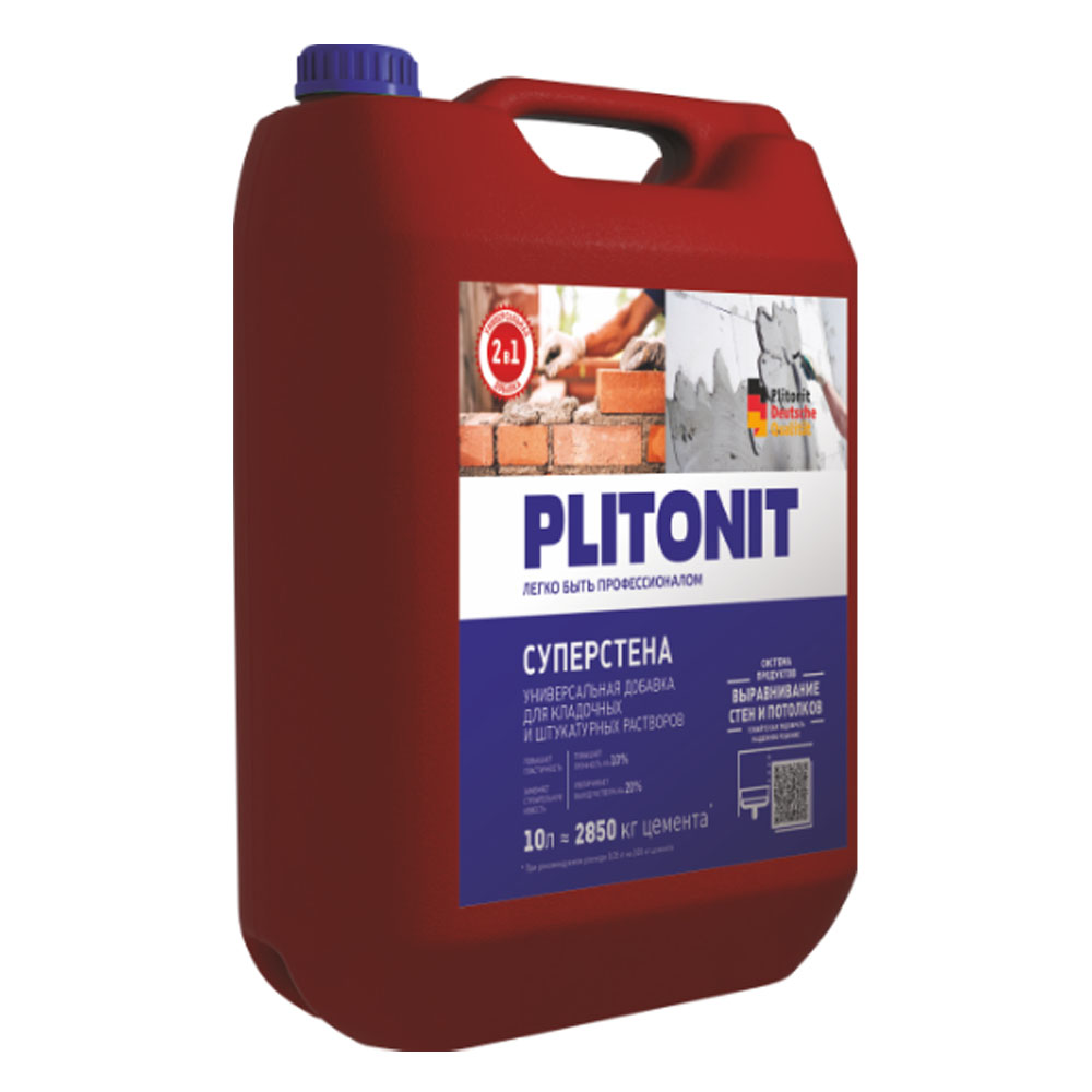 Добавка PLITONIT СуперСтена 10,0л универсальная для кладочных и штукатурных растворов