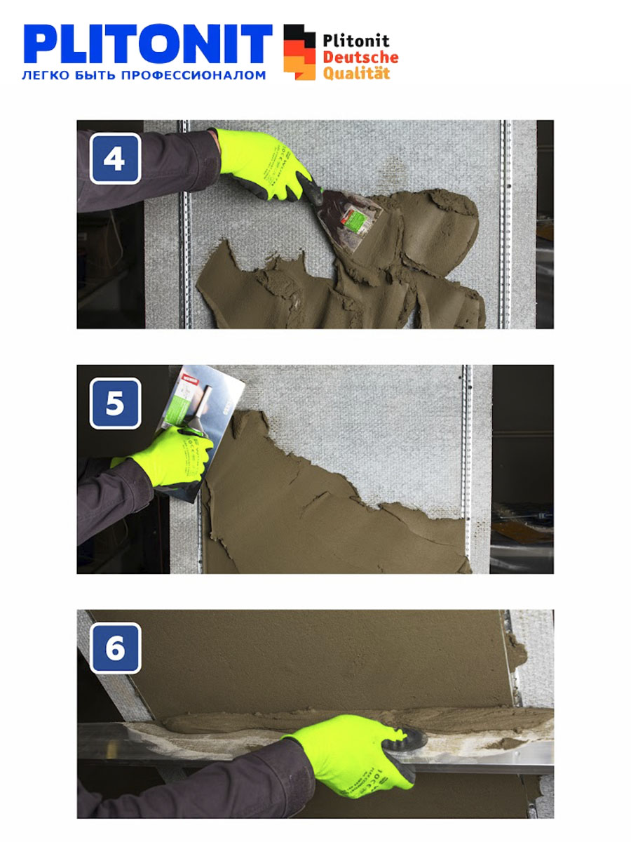 Продукт предназначен для выравнивания стен из бетона, кирпича, газобетона ручным способом, а также заделки стыков и отдельных неров-ностей бетонных и железобетонных плит в сухих, влажных помещениях и для наружных работ как фасадная штукатурка. Толщина слоя за одно нанесение - от 2 до 30 мм.