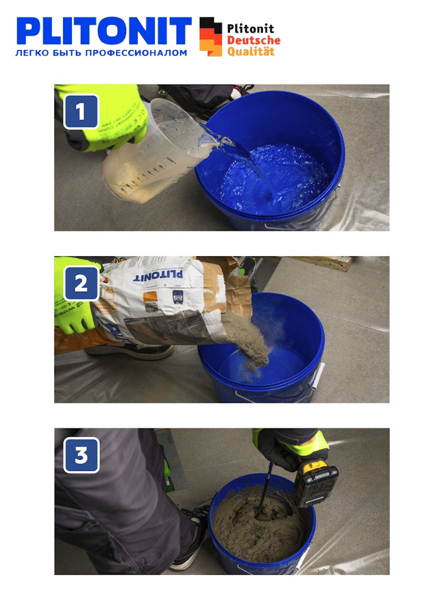 Количество воды на 1 кг смеси 0,17-0,22 л.