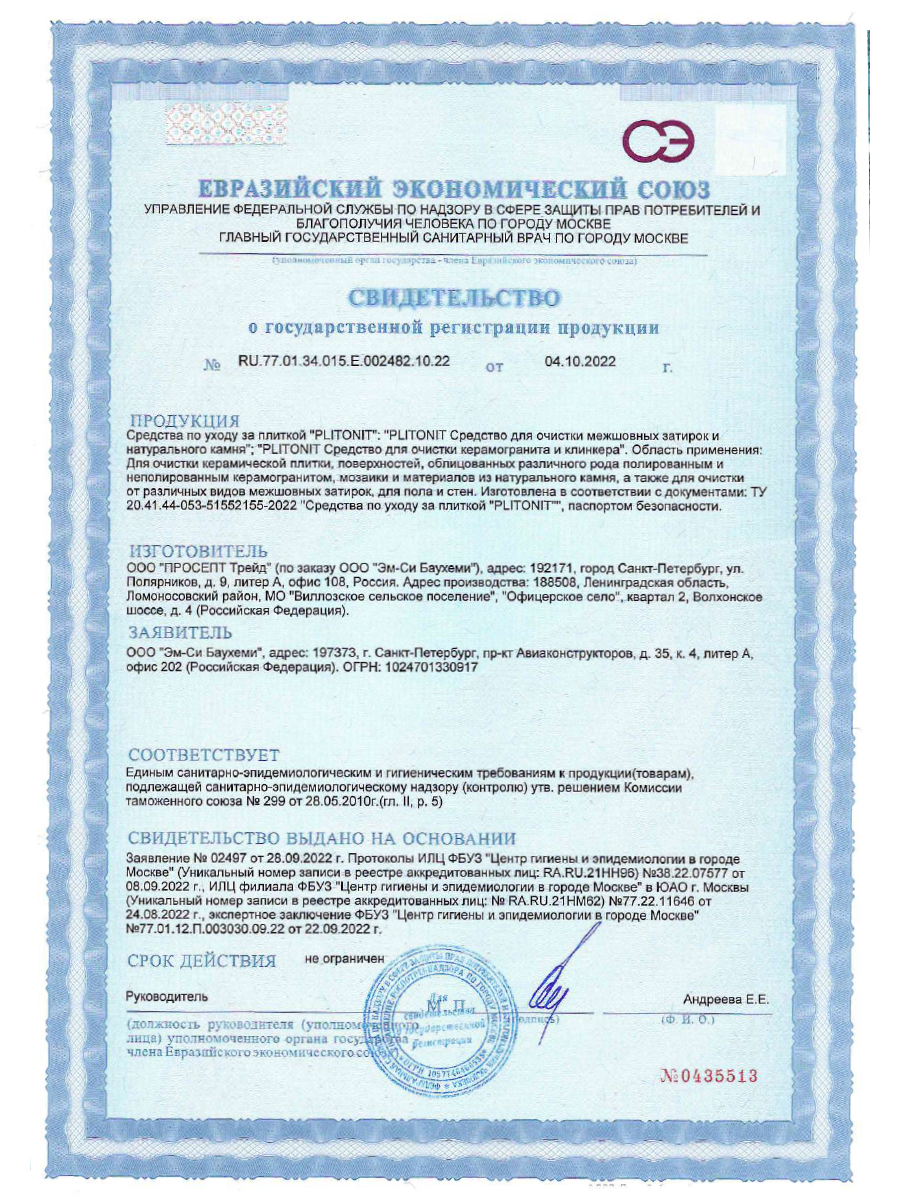 Средство для очистки межшовных затирок и натурального камня 0,5л PLITONIT